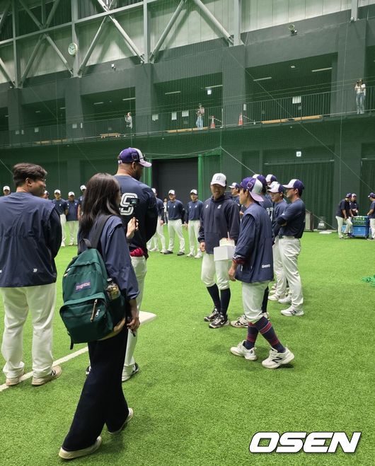 미야코노조 실내훈련장은 롯데가 이날 오후만 일시적으로 빌려서 쓰는 곳. 이에 구단 매니저와 프런트와 황급히 땅에 떨어진 케이크를 치웠고, 황성빈은 뒷정리를 도우며 프런트를 향해 “떨어트려서 미안하다”라고 사과했다. 케이크가 떨어진 실내훈련장의 인조잔디는 언제 그랬냐는 듯 말끔히 정리됐다.