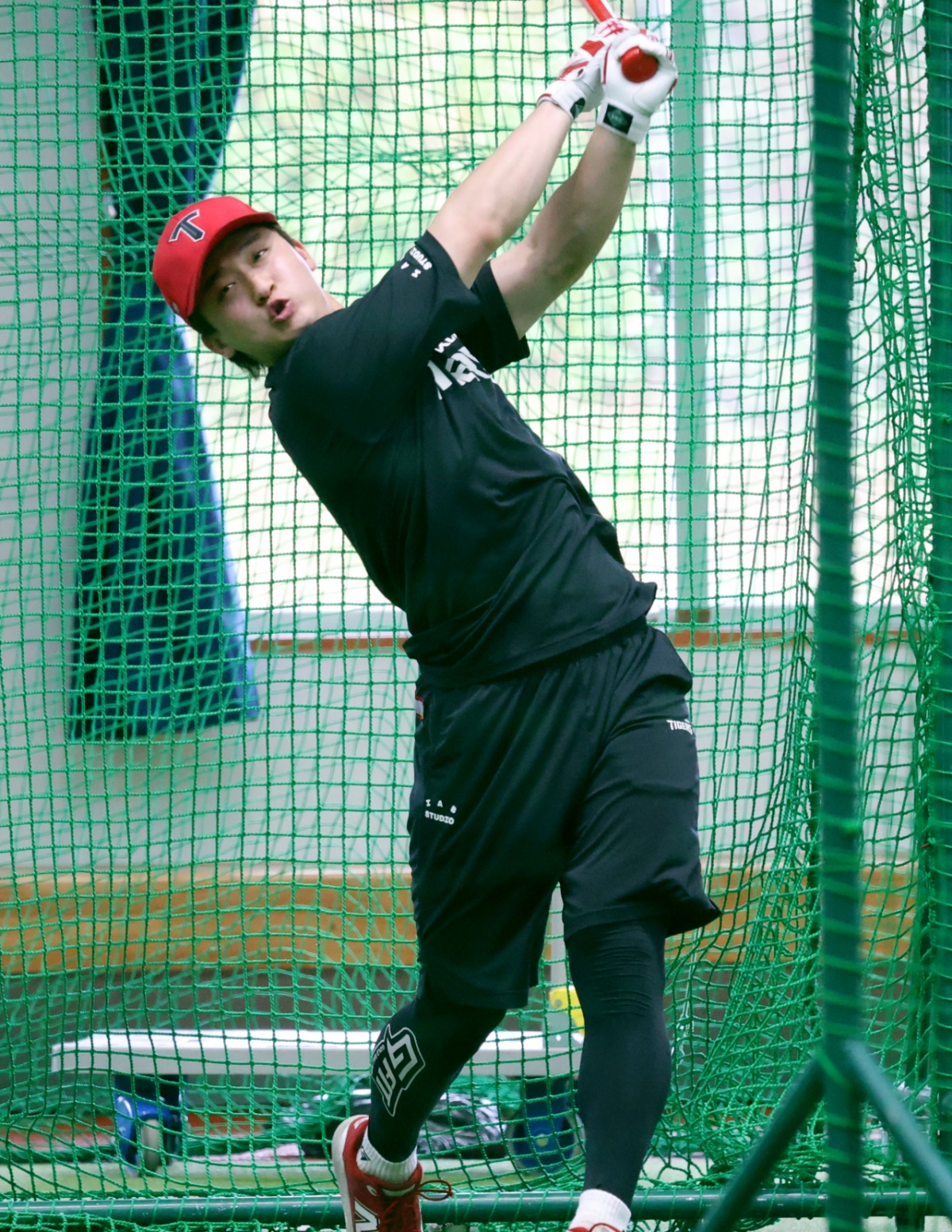 윤도현이 KIA 타이거즈의 일본 오키나와 스프링캠프에서 타격 훈련을 진행했다.