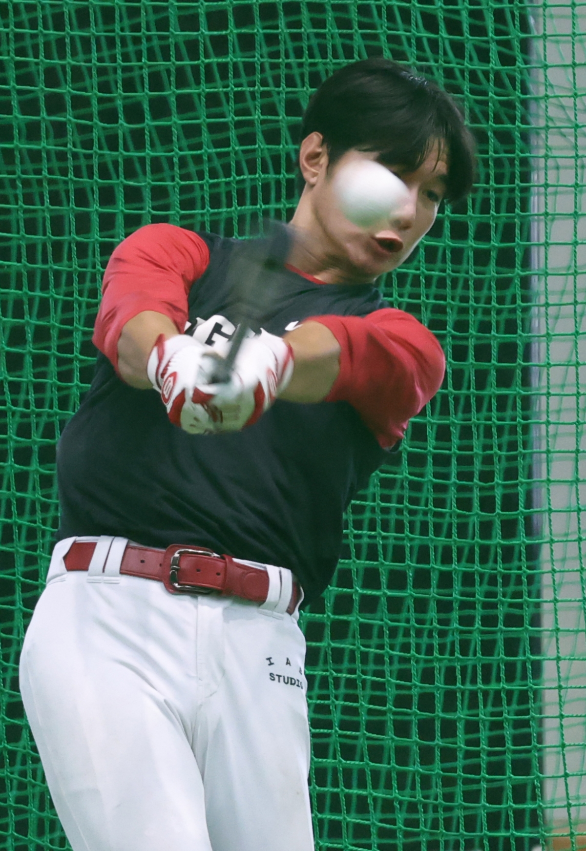 정현창이 타격 훈련을 하고 있다.