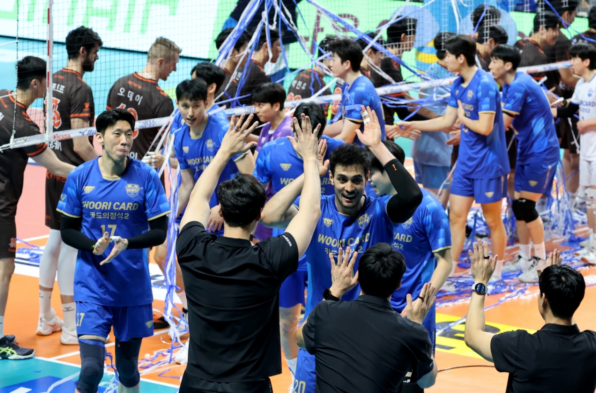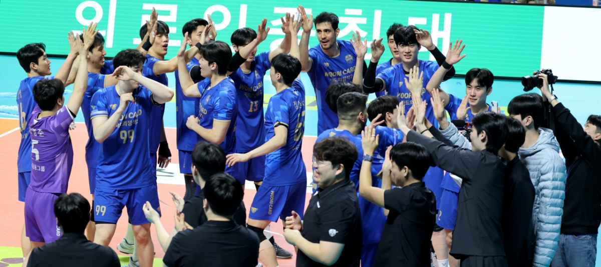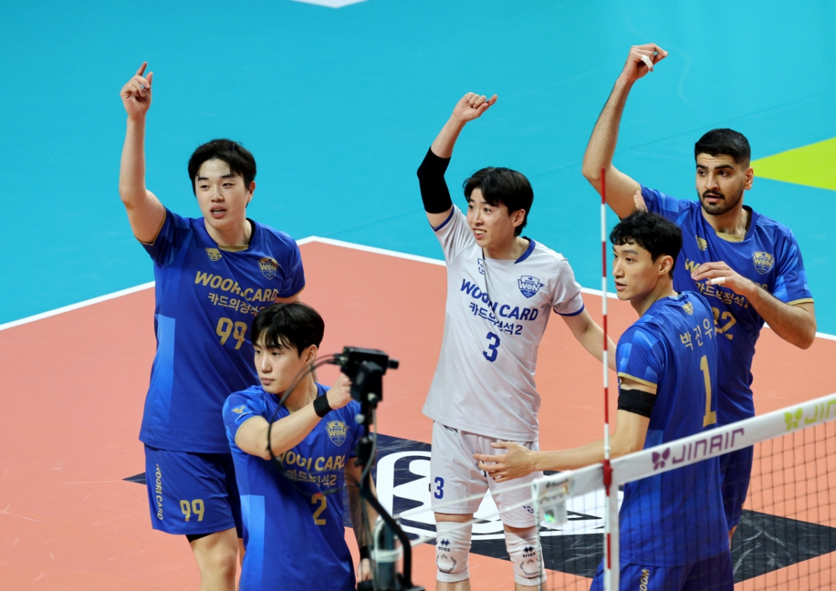 우리카드가 OK저축은행을 3-1로 제압하며 5위로 올라섰다. 우리 아라우조와 선수들이 25일 장충체육관에서 열린 진에어 2025-2026V리그 남자부 우리카드와 OK저축은행과의 경기에서 승리한 후 자축하고 있다. 우리가 OK를 내리며 5위로 올라섰다.2026.02.25. 독자들의 PICK! '무면허 음주·뺑소니' 여배우, 한국 떠났다…"단순 여행 아냐" '성매매 합법화' 김동완, 뜬금 윤여정 소환…"고급이랑 놀아야" "라면 끓여 줘" 시험관 임신 아내 부탁에...머리채 잡고 부모 욕 '40억 자산' 전원주, 몸에 밴 절약?...카페서 '3인 1잔'에 "민폐"