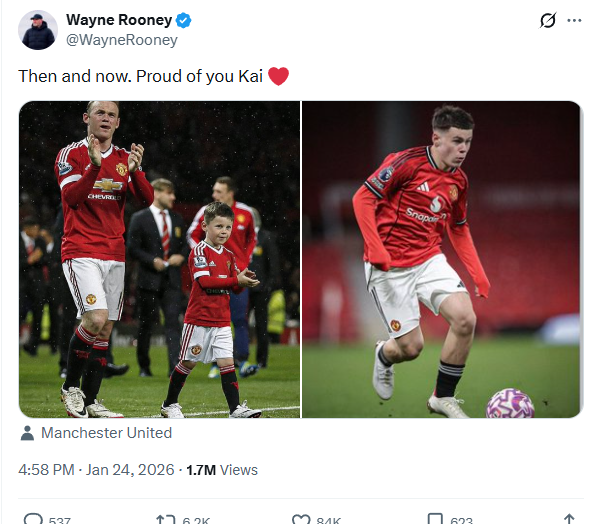[OSEN=이인환 기자] 피는 못 속인다. 맨체스터 유나이티드(이하 맨유)의 영원한 '전설' 웨인 루니의 장남 카이 루니(16)가 U-18 팀 복귀전에서 깔끔한 어시스트를 기록하며 잠재력을 뽐냈다.