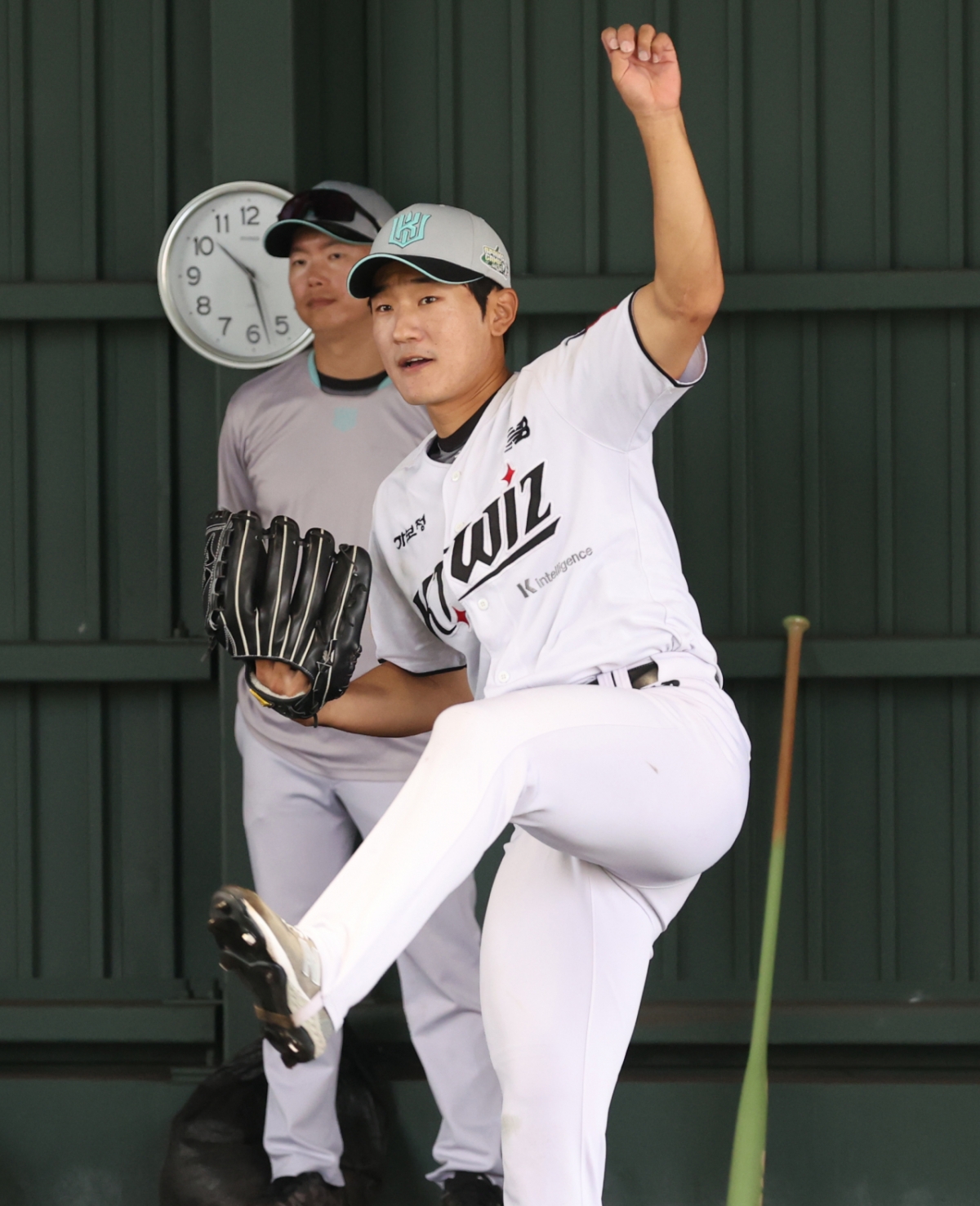 KT 위즈가 26일 일본 오키나와현 우루마 쿠시카와 야구장에서 스프링캠프 일정을 진행했다. 임준형이 불펜 피칭을 하고 있었다.