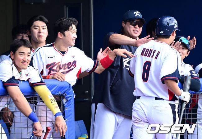 임무를 마치고 더그아웃으로 향하는 노시환을 향해 류지현 감독은 엄지를 치켜세웠다. 팀 선배 류현진은 형님 미소로 그를 반겼다. 작전 수행의 귀재 박해민도 박수를 치며 노시환의 플레이를 칭찬했다. 노시환을 맞이하는 대표팀 더그아웃은 노시환이 홈런을 치고 온 것처럼 화기애애했다.