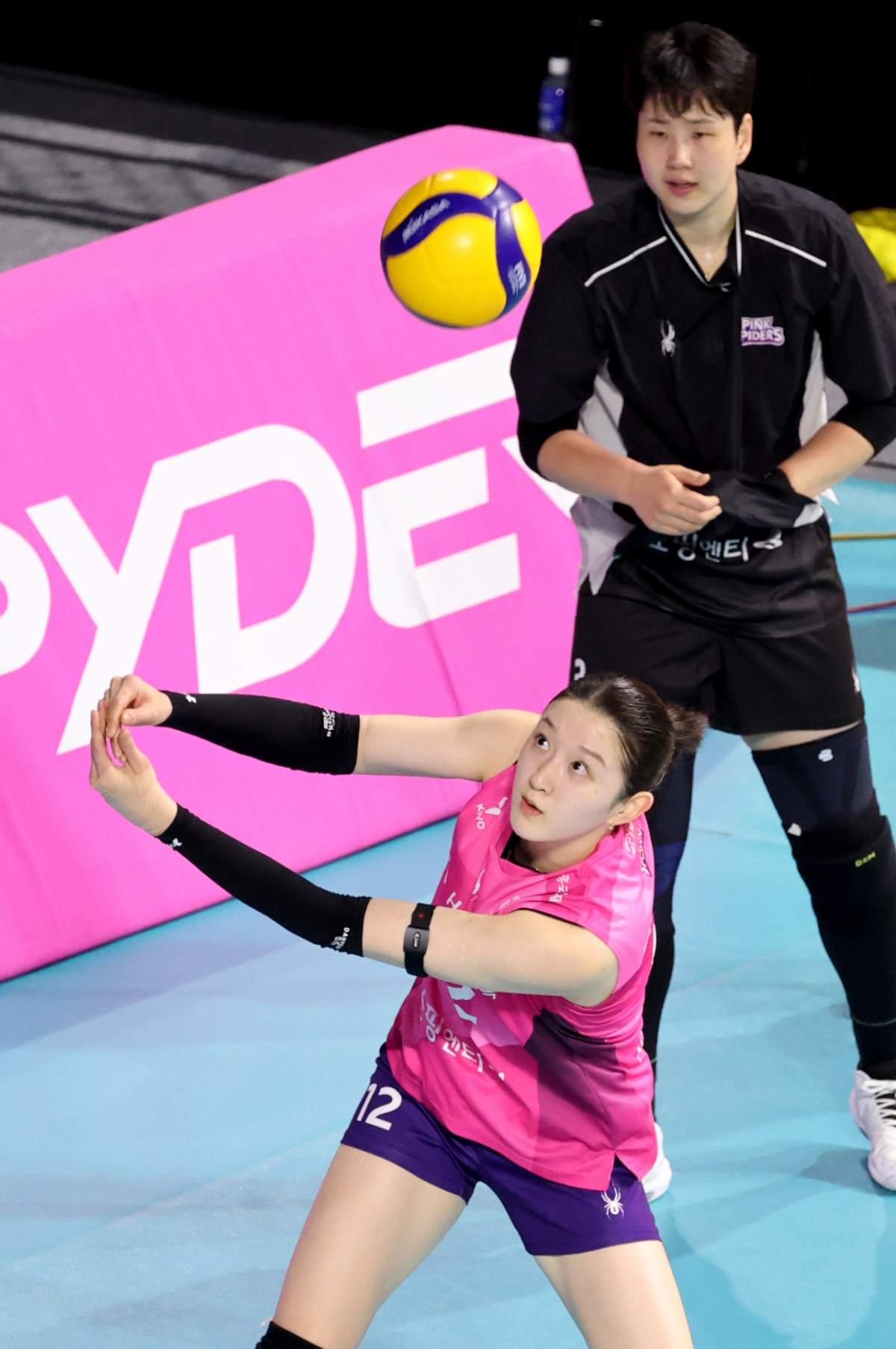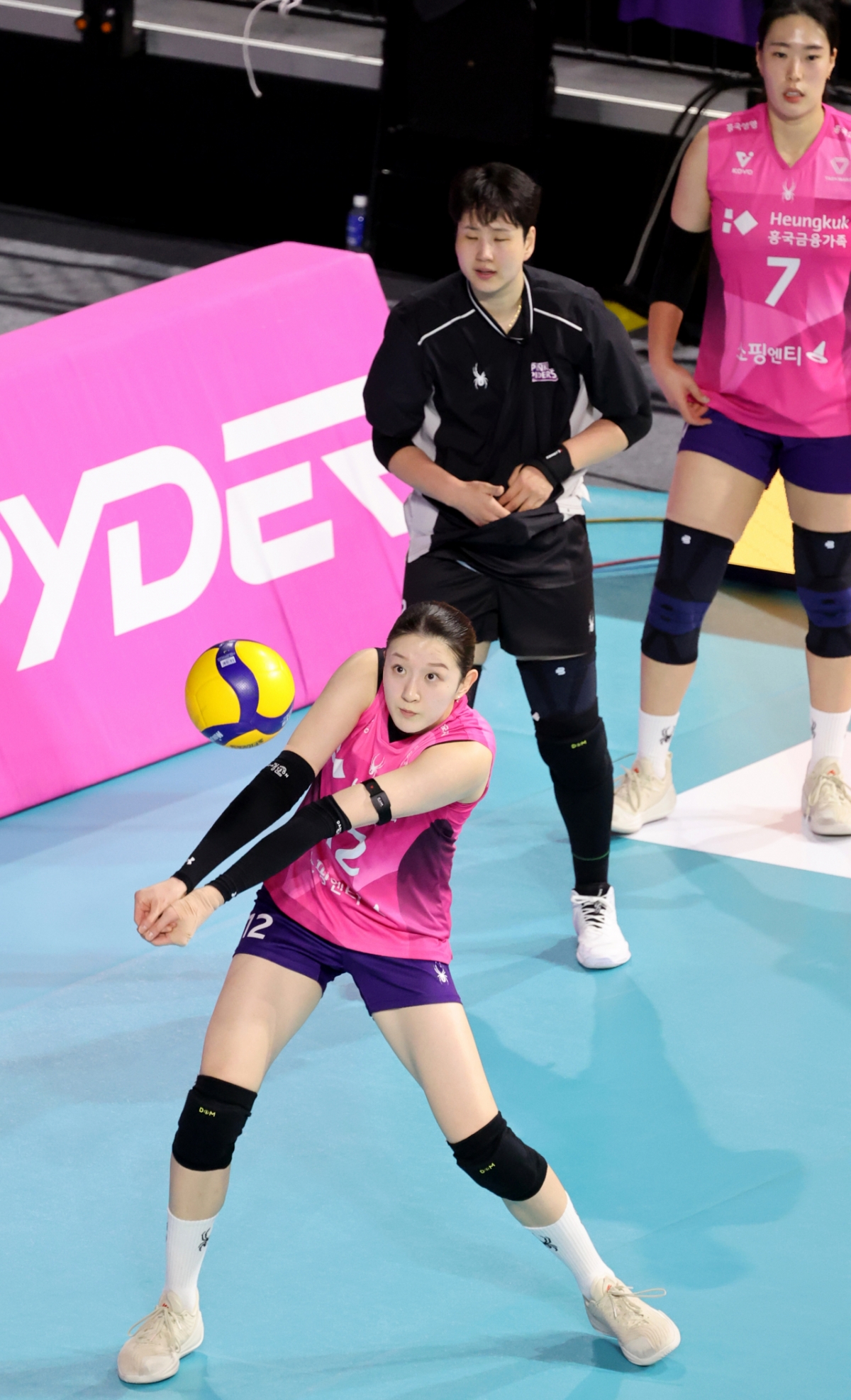 흥국 이다현이 27일 삼산월드체육관에서 열린 진에어 2025-2026V리그 여자부 흥국생명과 GS칼텍스 경기에 앞서 훈련을 하고 있다.2026.02.27.