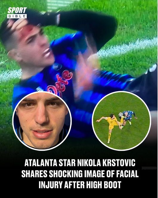 영국 '스포츠 바이블'은 27일(이하 한국시간) "아탈란타 공격수 크르스토비치가 '하이킥 충돌' 후 충격적인 얼굴 부상 사진을 공개했다"라고 보도했다.