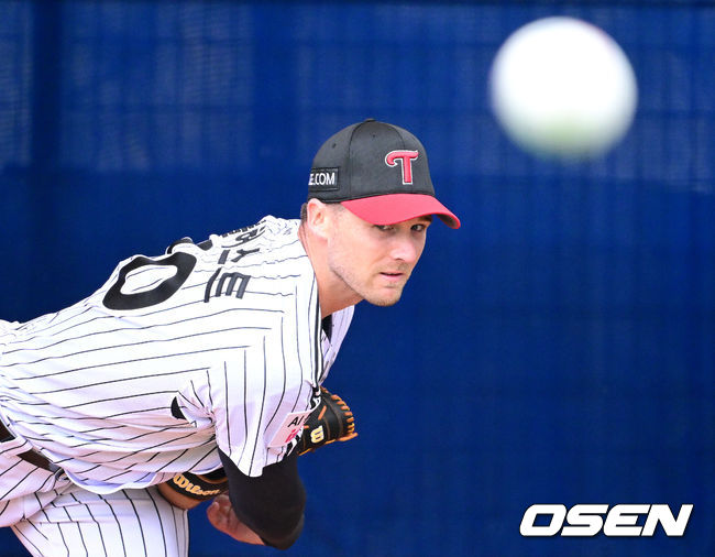 프로야구 LG 트윈스가 일본 오키나와 가데나 야구장에서 스프링캠프 훈련을 실시했다. 미국 애리조나에서 1차 스프링캠프를 마친 LG는 25일 오키나와에 입성해 26일부터 본격적으로 2차 캠프를 시작했다. LG 앤더스 톨허스트가 불펜 피칭을 펼치고 있다.