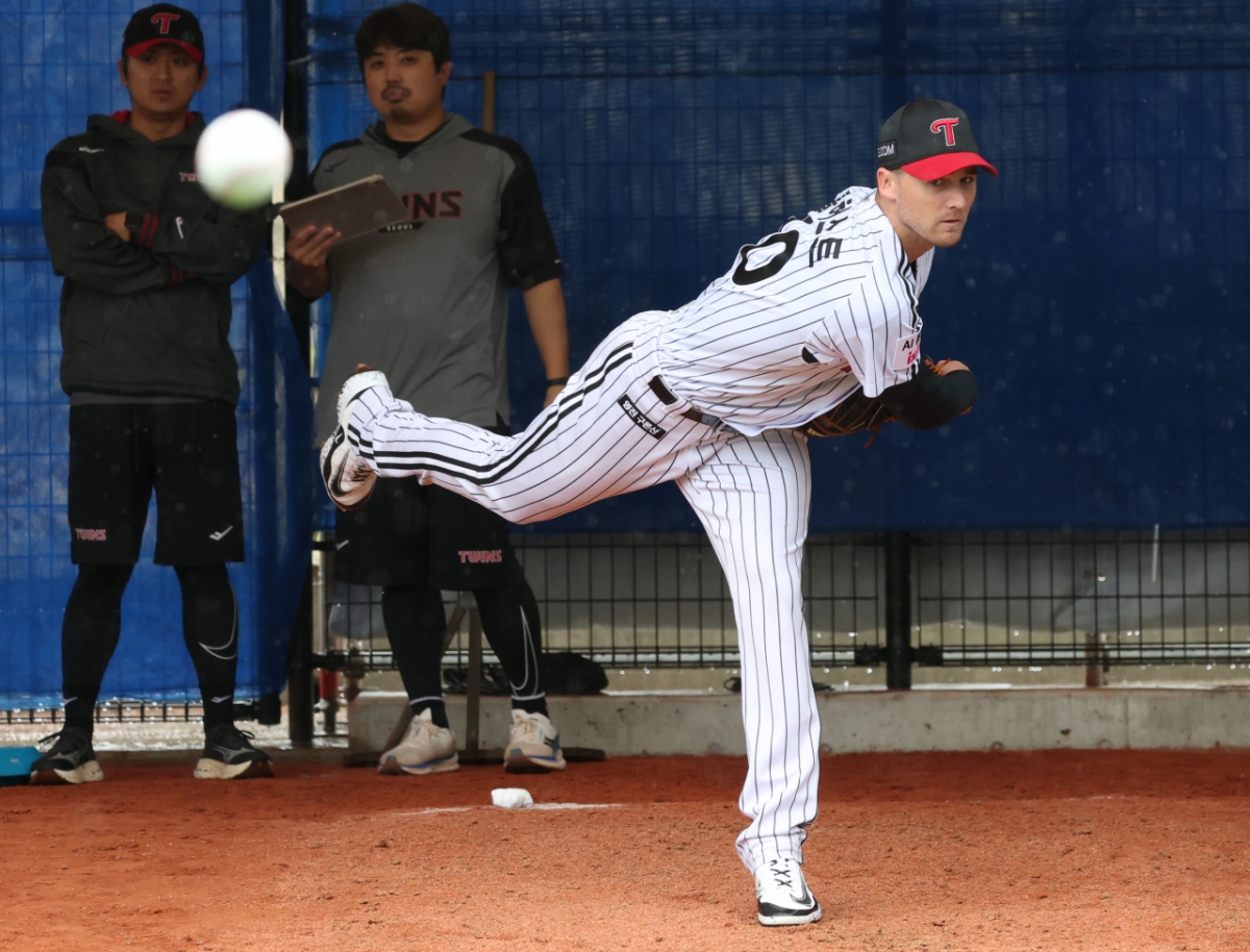 툴허스트가 불펜 피칭 훈련을 하고 있다.
