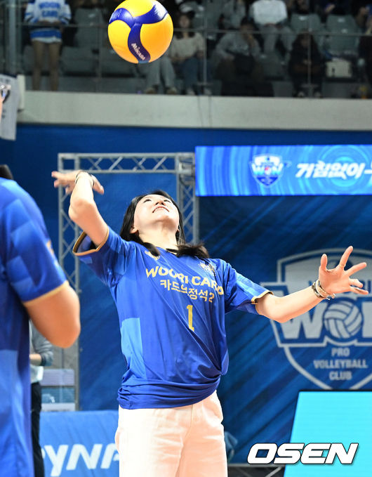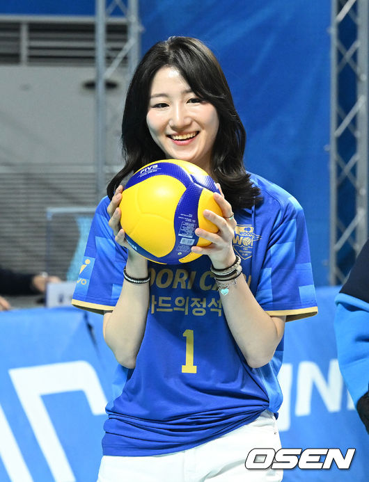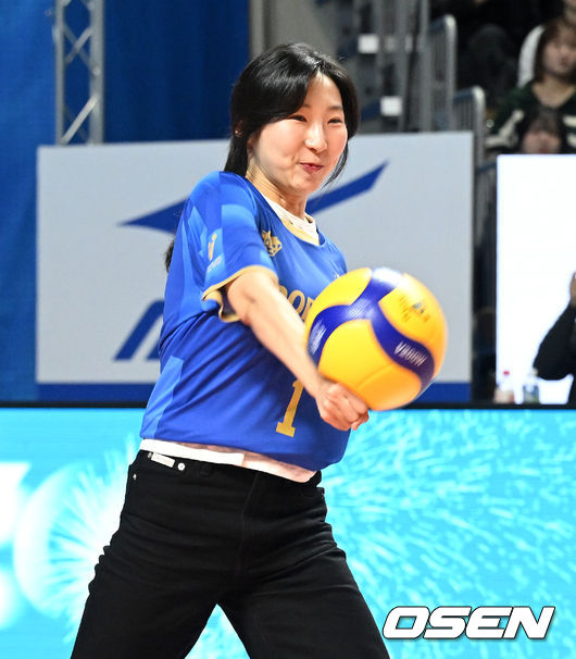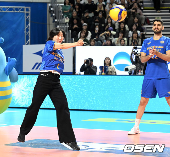 본 경기 시작 전 팬들의 뜨거운 박수 속 코트에 선 두 선수의 시구는 깨끗한 궤적을 그리며 OK저축은행 코트에 안착했다.