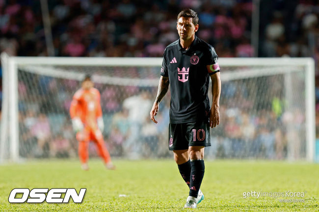 [OSEN=정승우 기자] 리오넬 메시(39, 인터 마이애미)가 경기 도중 난입한 관중에게 넘어지는 아찔한 상황을 겪었다. 다행히 큰 부상은 없었다.