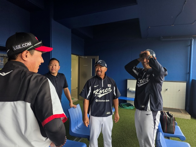 염경엽 감독은 27일 일본 오키나와현 카데나 구장에서 대표팀으로 차출된 김용일 LG 1군 수석 트레이닝 코치와 김광삼 1군 투수코치와 조우했다. 이날 카데나 구장에서는 대표팀과 KT 위즈의 연습 경기가 이뤄질 예정이었다. 하지만 이날 오전 오키나와에 내린 비로 경기가 취소됐고 28일 오전 출국하는 대표팀은 빠르게 카데나 구장에서 빠지게 됐다.