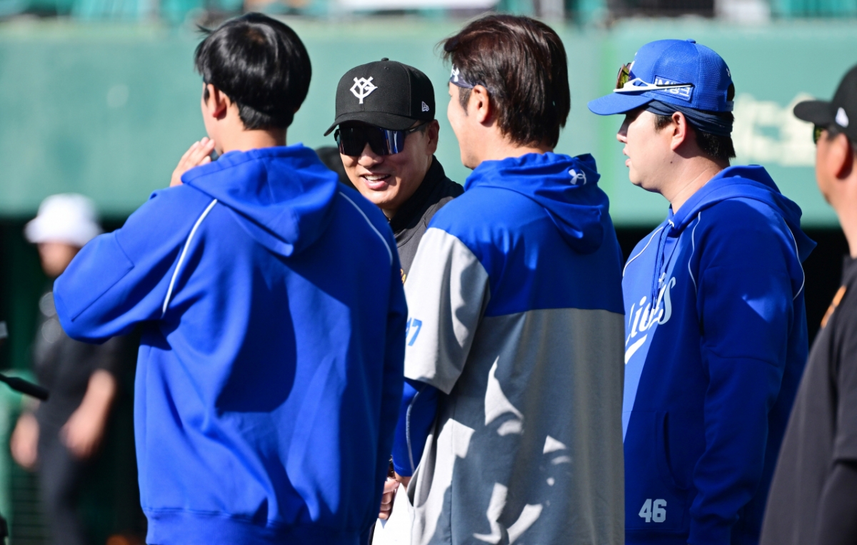 이승엽 요미우리 코치가 삼성 라이온즈의 후배들을 찾아 격려하는 모습이 일본 오키나와현 나하의 셀룰러 스타티움에서 목격되었다. 삼성 라이온즈가 28일 일본 오키나와현 나하의 셀룰러 스타티움에서 요미우리와 연습경기를 가졌다. 이승엽 요미우리 코치가 삼성 후배들을 찾아와 격려하고 있다. 독자들의 PICK! 유키스 동호 전처 "같이 성매매한 멤버 풀겠다"…카톡 공개 '사생활 논란' 박시후, 가만히 앉아서 억대 수익?...근황에 깜짝 "배우가 쿠팡 뛴다" 임주환 목격담...차태현 "소속사 지원 없다" 김애경, 50대에 결혼한 남편과 별거…"술 취하면 엉망"