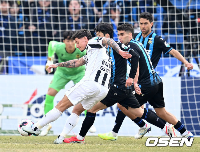 후반 45분 인천이 추격골을 넣었다. 박성훈이 박스 안에서 반칙을 저질렀고 주심은 비디오 판독(VAR) 후 페널티 킥을 선언했다. 키커로 나선 무고사가 실수 없이 득점했다.