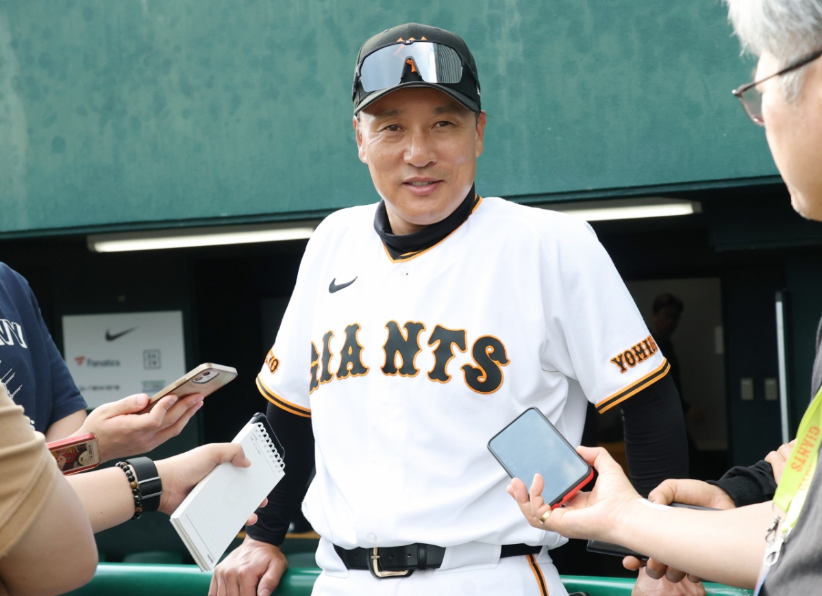 요미우리 이승엽 코치가 경기 후 한국 취재진과 인터뷰를 하고 있다.