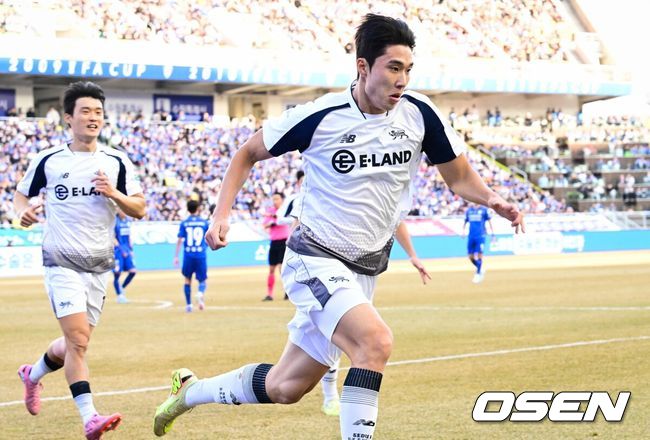 이랜드가 절호의 기회를 놓쳤다. 전반 43분 빠른 공격 전개 끝에 박재용이 다시 한번 헤더로 골문을 겨냥했다. 하지만 이번엔 김준홍이 집중력을 발휘해 옆으로 쳐냈다. 전반 추가시간 일류첸코의 터닝 발리슛은 골대를 넘어갔다. 그렇게 전반은 1-1로 끝났다.