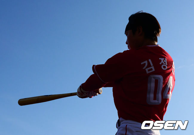 SSG 김정민이 배트를 휘두르고 있다. 2026.02.28 /[email protected]
