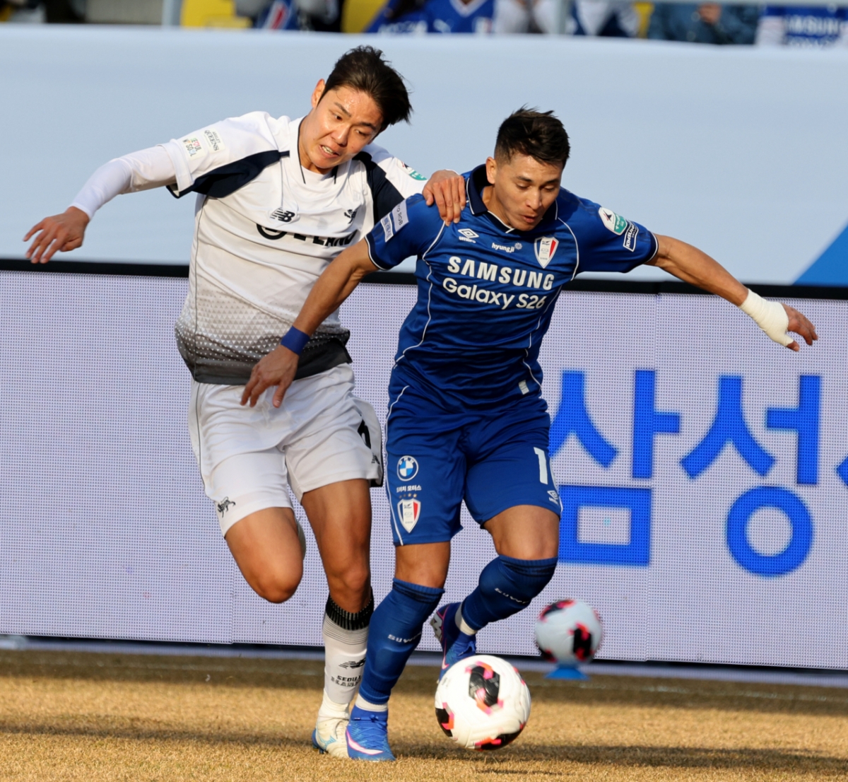 헤이스가 28일 수원월드컵경기장에서 열린 수원삼성과 이랜드 경기에서 백지웅과 치열한 볼다툼을 벌였다. 수원삼성 헤이스가 28일 수원월드컵경기장에서 열린 2026하나은행 K리그2 수원삼성과 이랜드 경기에서 백지웅과 치열한 볼다툼을 벌이고 있다. 2026.02.28. 독자들의 PICK! "유명 남자 아이돌, 유흥업소 종사자와 부적절 관계"…전 여친 폭로 "약 취한 사자와 인증샷?"…'화들짝' 놀란 노홍철, 사파리에 물었더니 유키스 동호 전처 "같이 성매매한 멤버 풀겠다"…카톡 공개 '사생활 논란' 박시후, 가만히 앉아서 억대 수익?...근황에 깜짝