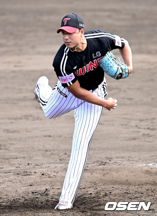 [OSEN=오키나와, 한용섭 기자] 프로야구 LG 트윈스 투수 정우영이 스프링캠프 첫 연습경기에서 제구 난조를 보였다. 그러나 희망적인 요소도 보여줬다.