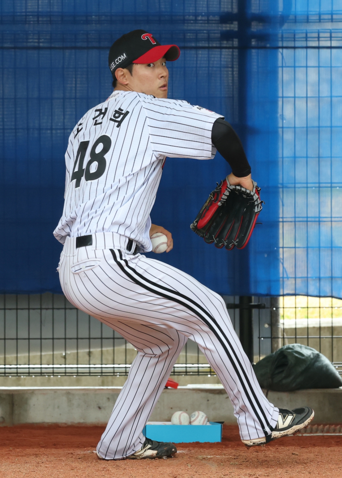 조건희가 불펜 피칭 훈련을 하고 있다.