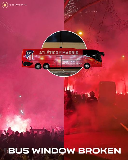 이어 매체는 "그 결과 아틀레티코 버스는 도착하자마자 극성 팬들의 공격 목표가 되는 '쉽고 노출된 표적'이 되었다. 이로 인해 아틀레티코는 경기장 인근에서 몇 분 동안 경찰에 의해 제지되며 도착이 다소 지연됐다. 그 틈을 타 일부 바르사 팬들이 버스로 물건을 던졌고, 그중 하나가 직접 맞아 공식 팀 버스의 유리창 한쪽이 깨졌다"라고 설명했다.