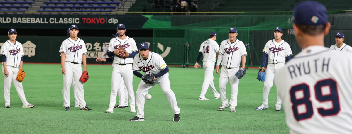 야구대표팀 투수 류현진이 2026WBC 도쿄라운드 개막을 하루 앞둔 4일 도쿄돔에서 열리 공식훈련에서 투수수비훈련을 하고 있다. 2026.03.04.
