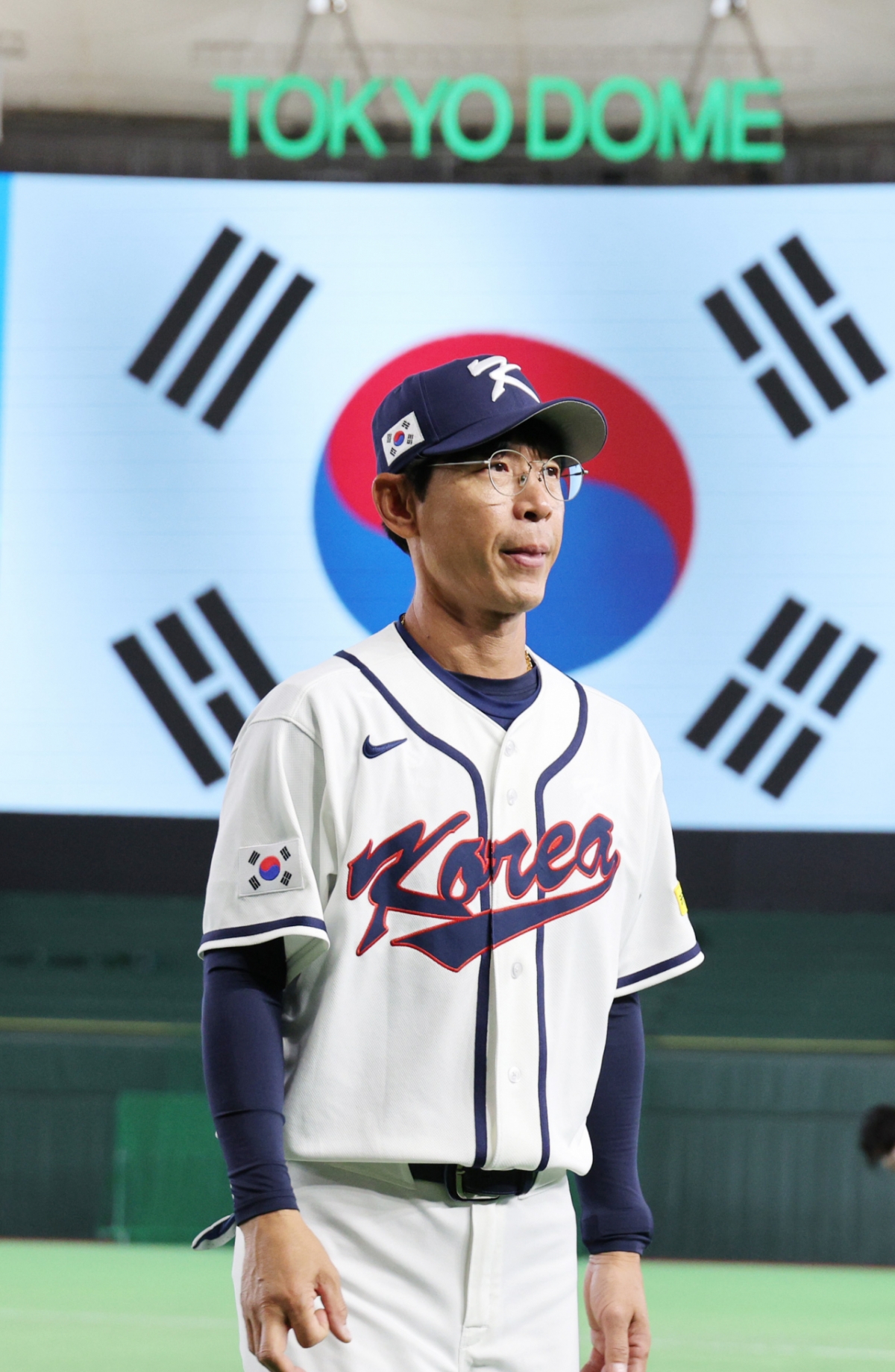 야구대표팀 김재걸 코치가 2026WBC 도쿄라운드 개막을 하루 앞둔 4일 스크린에 태극기가 표출된 도쿄돔 공식훈련에서 더그아웃으로 향하고 있다. 2026.03.04.