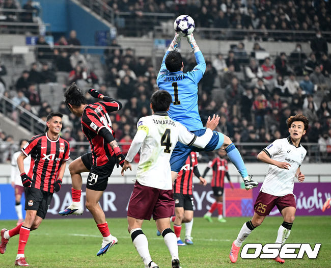 FC 서울은 2025-2026 아시아축구연맹 챔피언스리그 엘리트 16강 1차전에서 비셀 고베에 0-1로 패했다. FC 서울의 후이즈는 페널티킥을 실축하며 팀의 패배를 막지 못했다. 경기 중 비셀 고베의 골키퍼 마에카와가 볼을 잡고 있는 모습이 포착되었다.