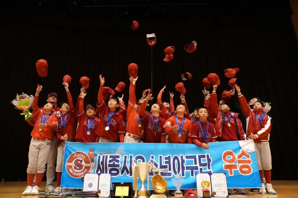 세종시유소년야구단은 지난달 25일부터 3월 2일까지 6일동안 전남 순창군 팔덕야구장 등 총 12면에서 열린 유소년야구를 대표하는 제11회 순창군수배 전국유소년야구대회에서 2026 KBO 신인 최현우(키움 히어로즈)와 이민준(kt 위즈)을 동시에 배출한 전통의 강호 경기 일산자이언츠유소년야구단(최영수 감독)을 8-2로 물리치고 우승컵을 차지했다.