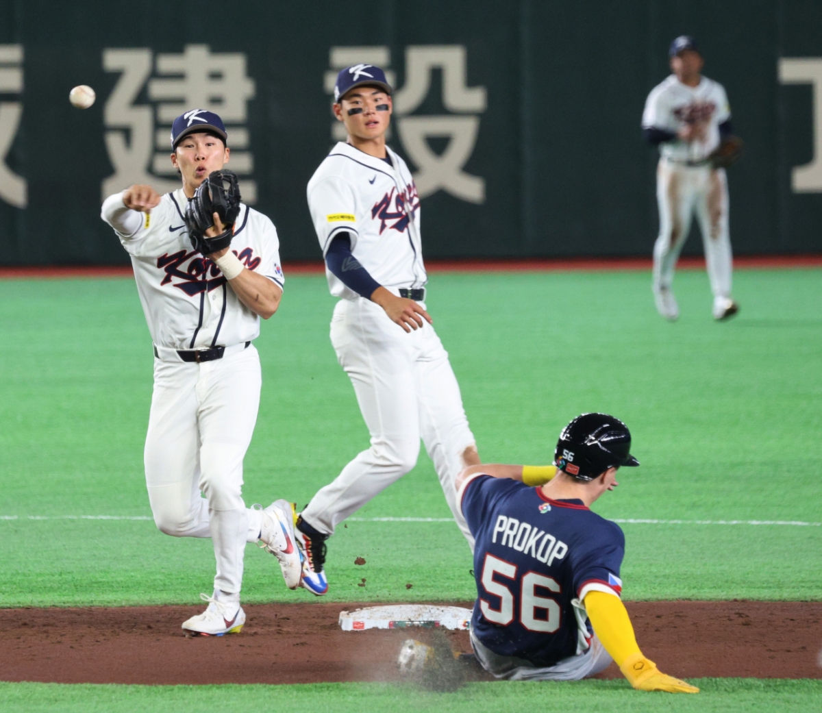 야구대표팀 2루수 김혜성이 5일 도쿄돔에서 열린 2026WBC 도쿄POOL 개막 두번째경기 한국과 체코 경기에서 병살처리를 했다. 그는 3회초 무사 1루 상황에서 2번 체르빈카의 유격수앞 땅볼때 1루주자를 2루포스아웃시켰다. 이후 1루로 송구해 병살처리를 완료했다.