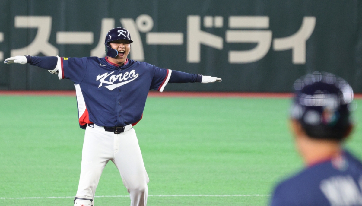 한국의 6번 타자 문보경은 7일 도쿄돔에서 열린 2026WBC 도쿄POOL 대한민국과 일본의 경기 1회초에 기쿠치를 상대로 2타점 2루타를 터트렸다. 그는 무2사 1,2루 상황에서 2루타를 기록했다. 문보경은 2루타를 친 후 비행기 세리머니를 펼쳤다. 한국 6번타자 문보경이 7일 도쿄돔에서 열린 2026WBC 도쿄POOL 대한민국과 일본의 경기 1회초 기쿠치를 상대로 무2사 1,2루에서 2타점 2루타를 터트린 후 비행기세리머니를 펼치고 있다. 2026.03.05. 독자들의 PICK! "몇 명이랑 잤나 세어 보자" 장항준 19금 발언 파묘 "사랑해, 뽀뽀 쪽" 은퇴한 남편 녹음파일, 딸 결혼 앞두고 지인 13세 딸 성폭행 살해한 살인범 "동거녀 시체 안고 자" "딸 최진실 통장에 15억, 건물도 환희·준희에"...母, 유산 300억설 반박