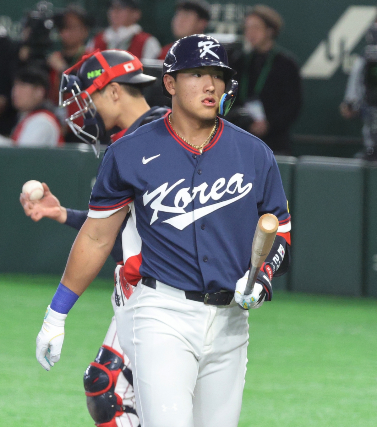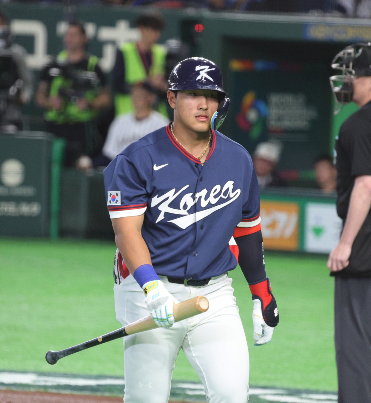 한국 4번타자 안현민이 7일 도쿄돔에서 열린 2026WBC 도쿄POOL 대한민국과 일본의 경기 1회초 기쿠치를 상대로 삼진으로 물러나고 있다. 2026.03.05.