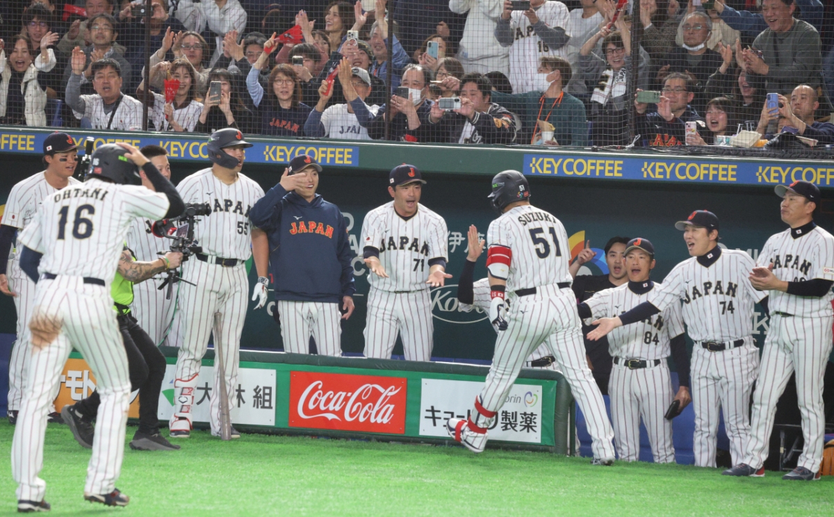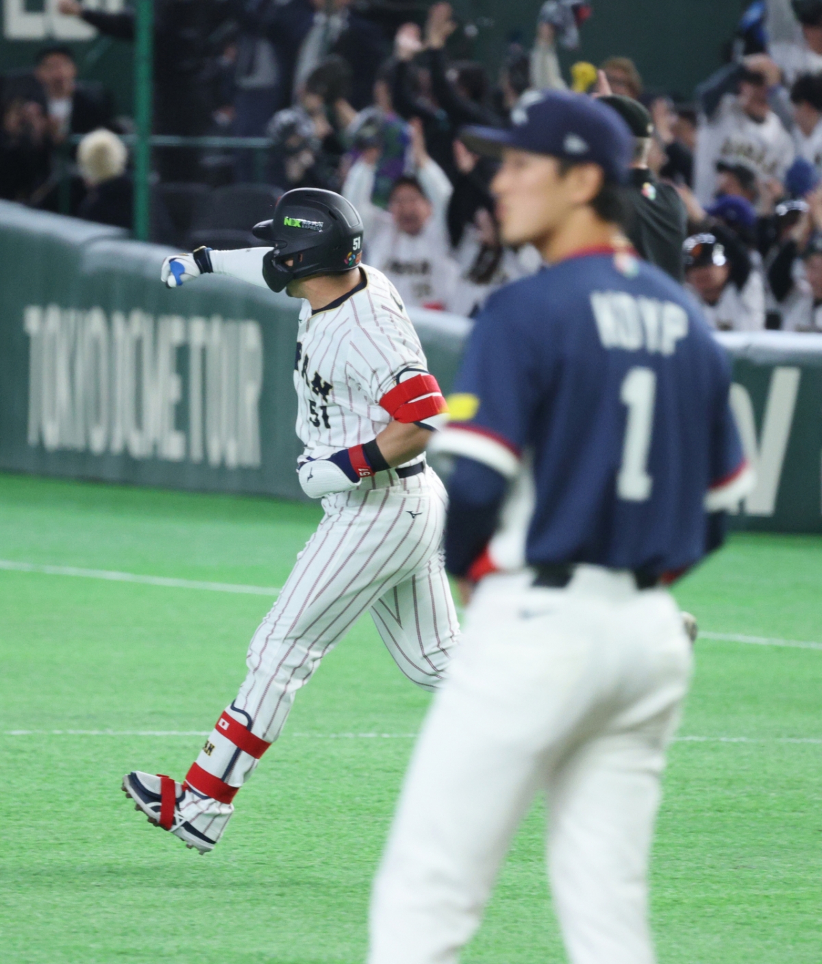 일본 3번타자 스즈키가 7일 도쿄돔에서 열린 2026WBC 도쿄POOL 대한민국과 일본의 경기 1회말 1사 2루에서 고영표를 상대로 투런홈런을 터트린 후 홈인하고 있다. 2026.03.07.