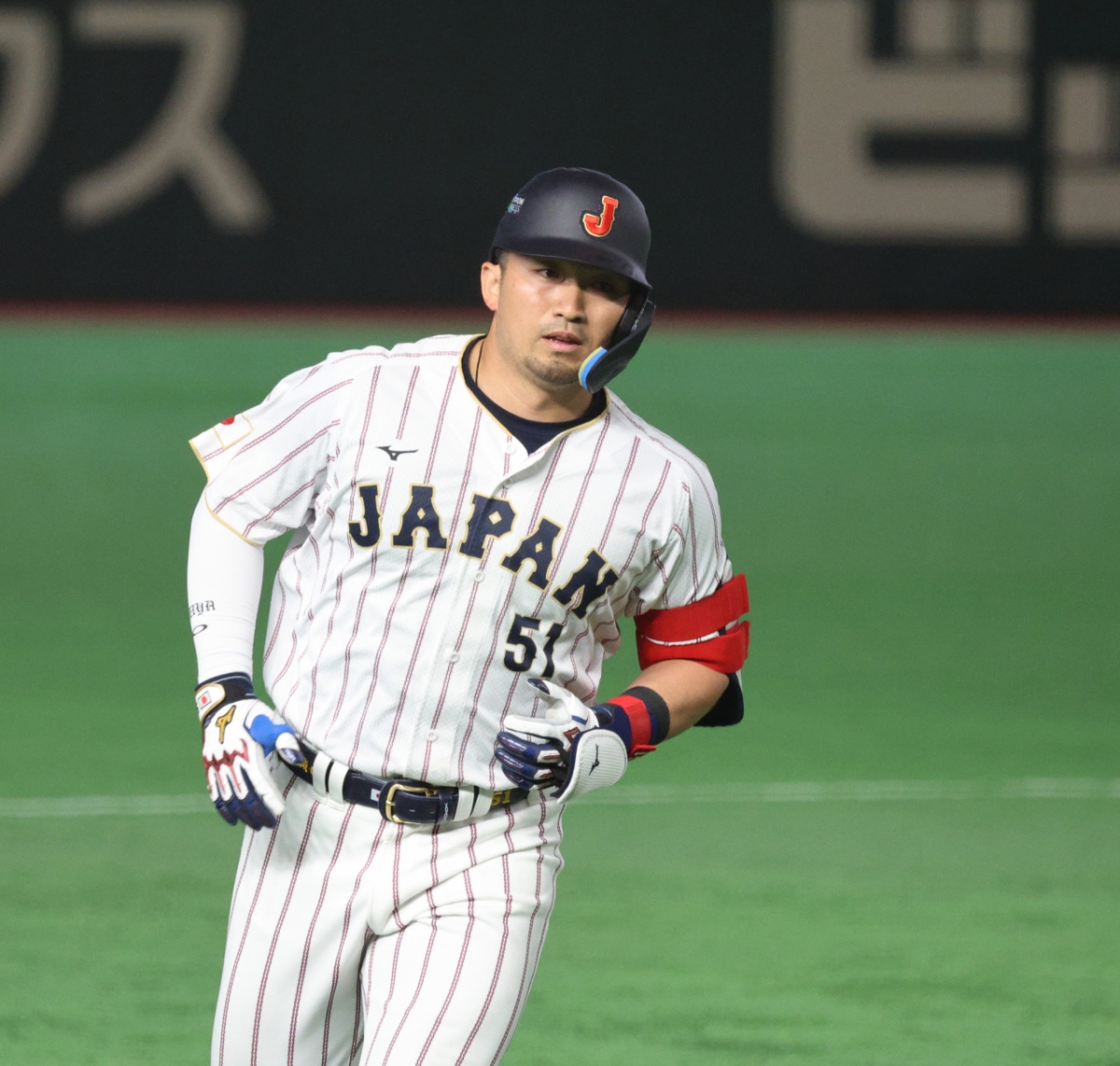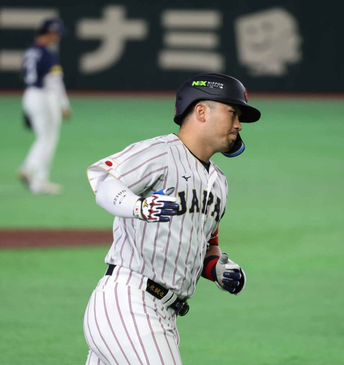 1회말 추격2점홈런을 쏘아올렸던 일본 3번타자 스즈키가 7일 도쿄돔에서 열린 2026WBC 도쿄POOL 대한민국과 일본의 경기 3회말 2사에서 고영표를 상대로 역전홈런을 터트린 후 홈인하고 있다.