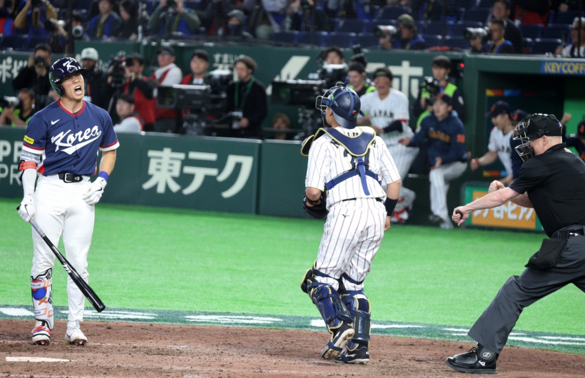 한국 9번타자 김혜성이 7일 도쿄돔에서 열린 2026 WBC 도쿄POOL 대한민국과 일본경기 8회초 2사 1,2루에서 삼진을 당하며 아쉬움을 터트리고 있다. 026.03.07.