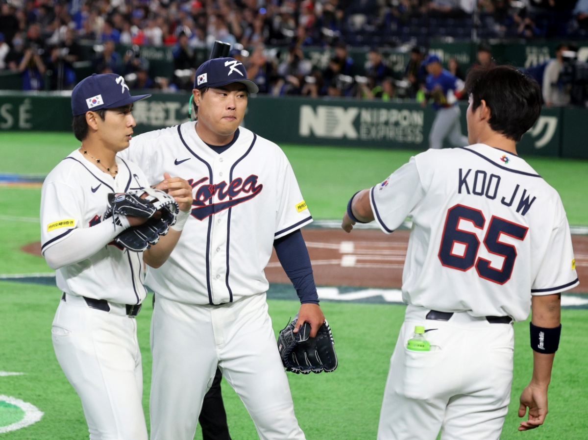 한국 선발투수 류현진이 8일 도쿄돔에서 열린 2026 WBC 도쿄POOL 대한민국과 대만 경기에서 1회초 수비를 마친 후 더그아웃으로 향하고 있다. 026.03.08.