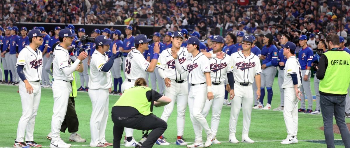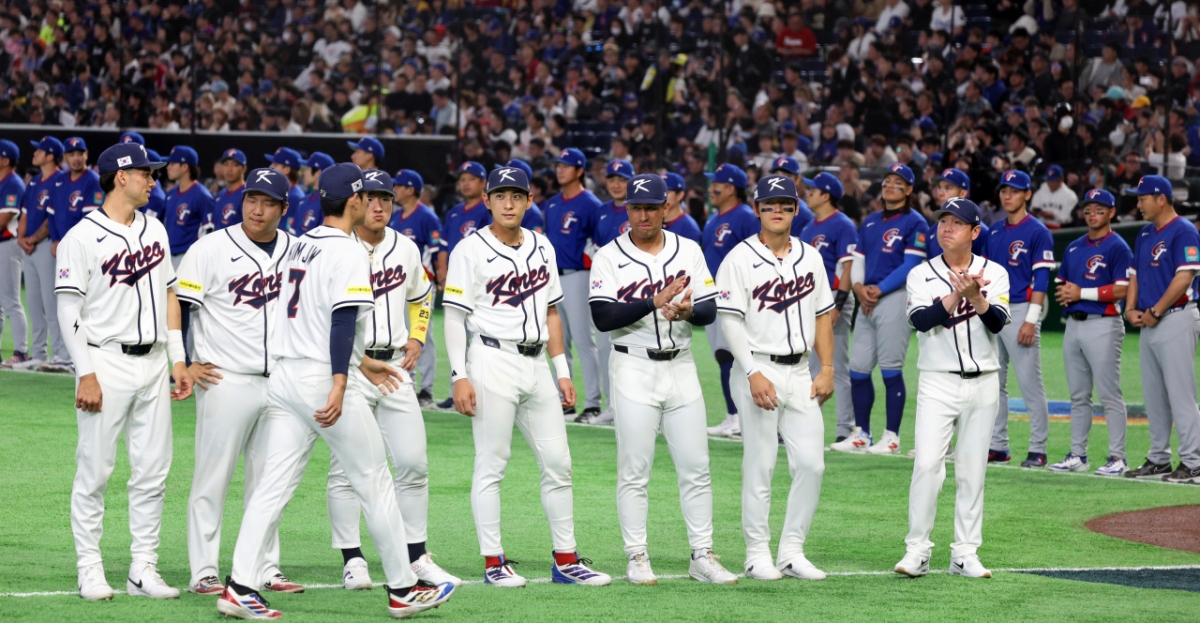 류지현 감독이 8일 도쿄돔에서 열린 2026 WBC 도쿄POOL 대한민국과 대만 경기 오프닝세리머니에서 선발들을 맞이하고 있다. 026.03.08.