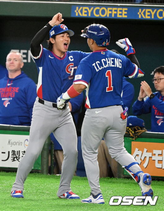 2026 월드베이스볼클래식(WBC) 1라운드 C조 조별리그 대한민국과 대만의 경기가 8일 일본 도쿄돔에서 열렸다. 한국은 전날 일본과의 경기에서 6-8로 석패했으며, 앞서 체코전을 11-4로 잡으며 1승1패를 기록했다. 6회초 무사에서 대만 정쭝저가 중월 솔로포를 날리며 천제셴과 기뻐했다.