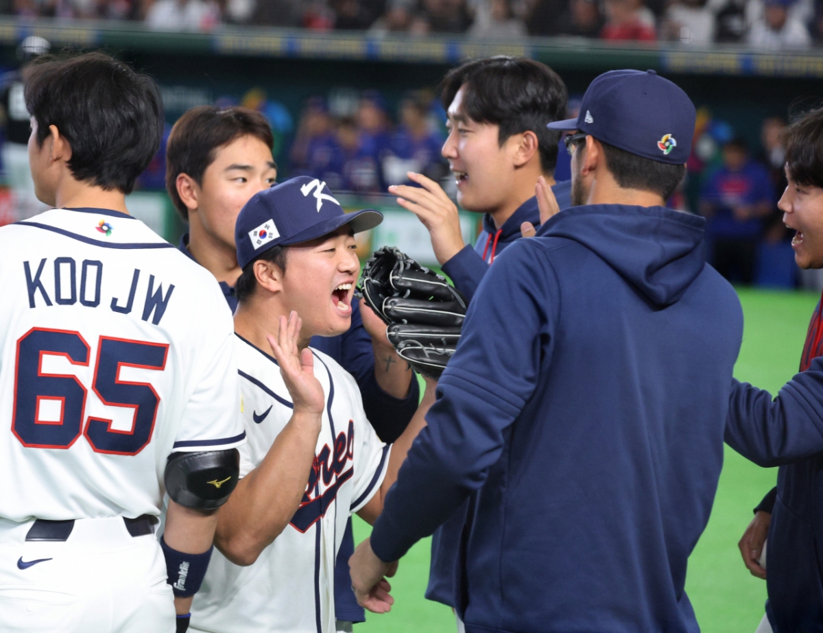 한국 우완투수 고우석 8일 도쿄돔에서 열린 2026 WBC 도쿄POOL 대한민국과 대만 경기 8회초 무실점 피칭을 펼친후 환호하고 있다. 026.03.08.