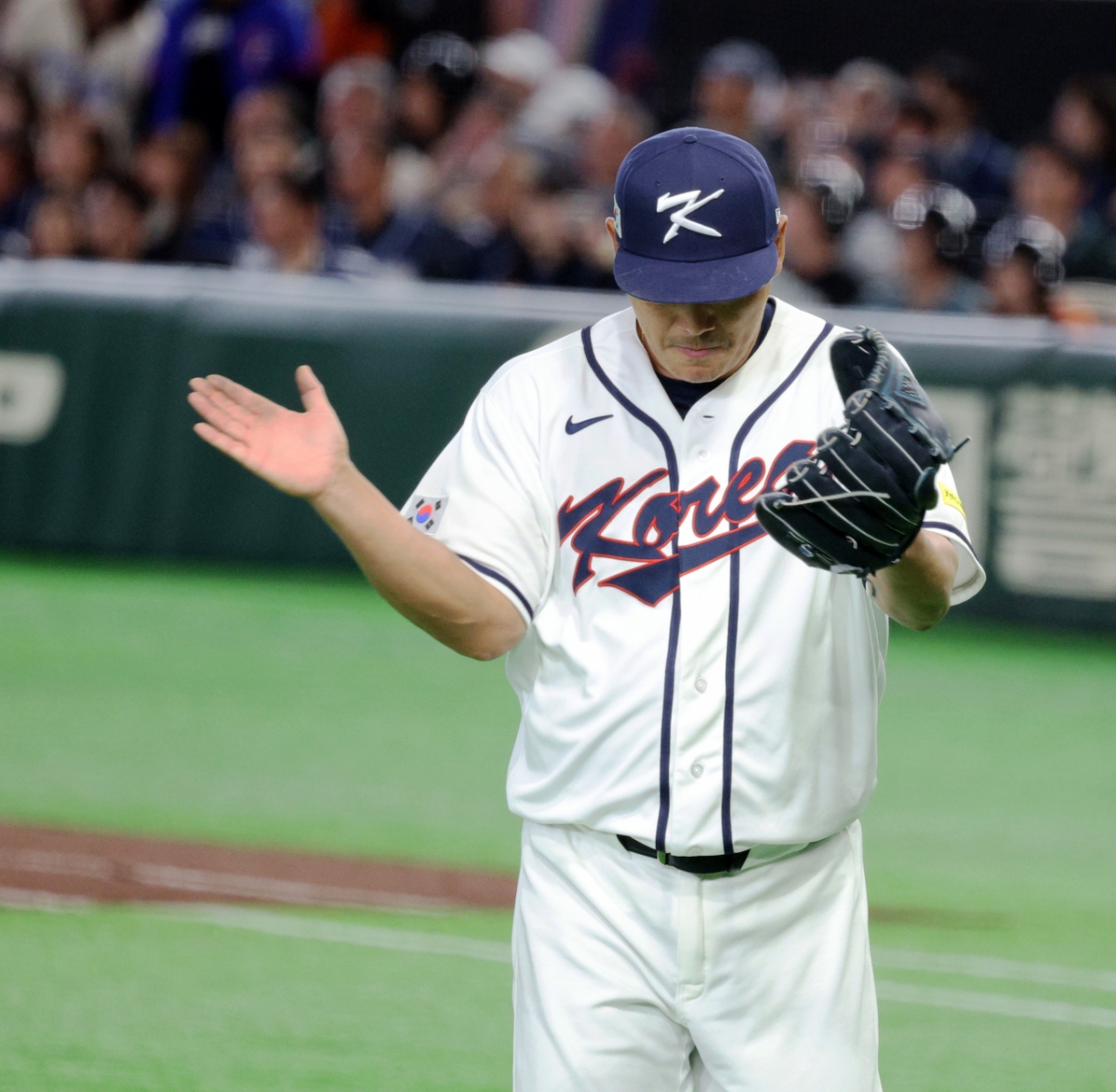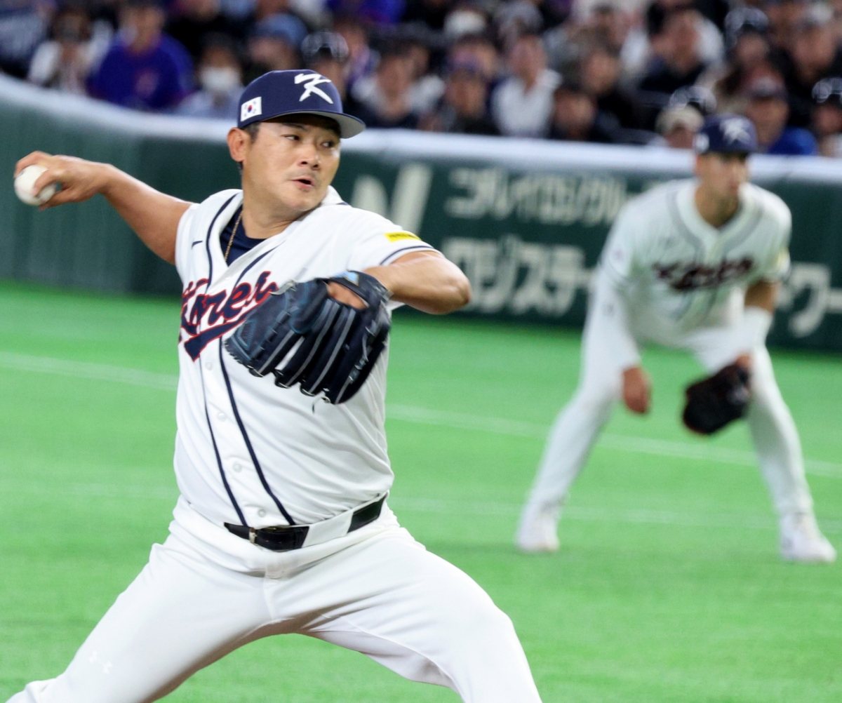 야구대표팀 우완투수 노경은이 8일 도쿄돔에서 열린 2026 WBC 도쿄POOL 대한민국과 대만 경기 10회말 등판해 한타자를 잡아내고 있다. 026.03.08.