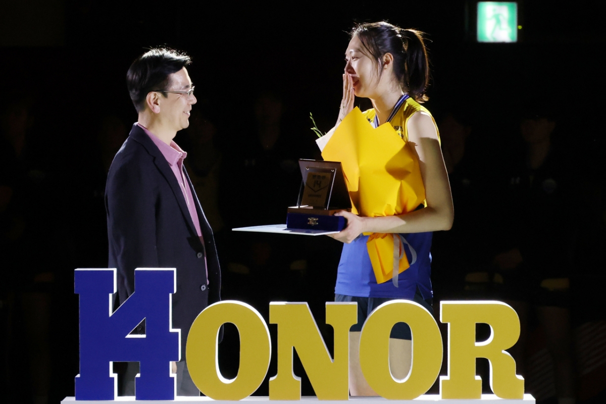 현대건설의 양효진 선수의 은퇴식이 8일 경기도 수원체육관에서 열렸다. 양효진은 2025-2026 V-리그 여자부 현대건설 대 페퍼저축은행 경기 후 열린 은퇴식에 참석했다. 그녀는 이한우 구단주 겸 현대건설 사장으로부터 꽃다발과 감사패를 받고 기념촬영을 했다.