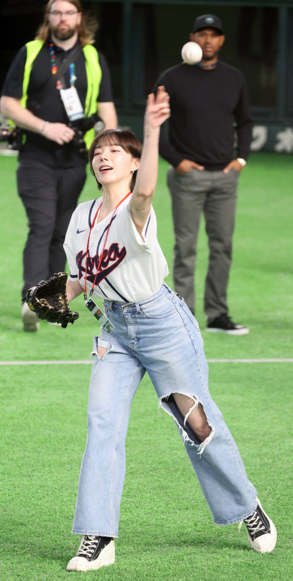 치어리더 하지원이 9일 도쿄돔에서 열린 2026 WBC 도쿄POOL 대한민국과 호주 경기에 에이티즈 우영이 시구자로 나서는 가운데 치어리더 하지원이 김병현 해설위원과 캐치볼을 하고 있다. 026.03.08. 독자들의 PICK! "네 몸 확인하겠다" 덮친 기획사 대표...고백한 여배우 "몇 명이랑 잤나 세어 보자" 장항준 19금 발언 파묘 한석준 "이어폰 없이 영상 보는 노인, 미워말라" 시끌 '곰탕집'에 1인 기획사 차린 이하늬, 60억 벌었다...어떻게