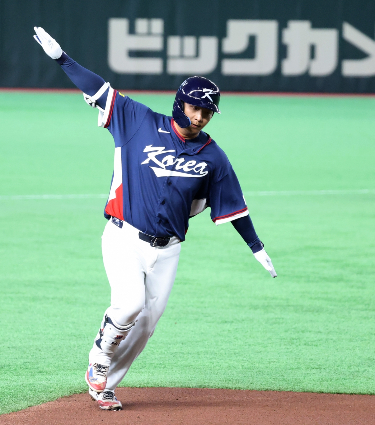 야구대표팀 문보경이 9일 도쿄돔에서 열린 2026 WBC 도쿄POOL 대한민국과 호주 경기 2회초 무사 1루에서 호주 웰스를 상대로 선제 투런홈런을 터트린 후 홈인하고 있다. 026.03.08.