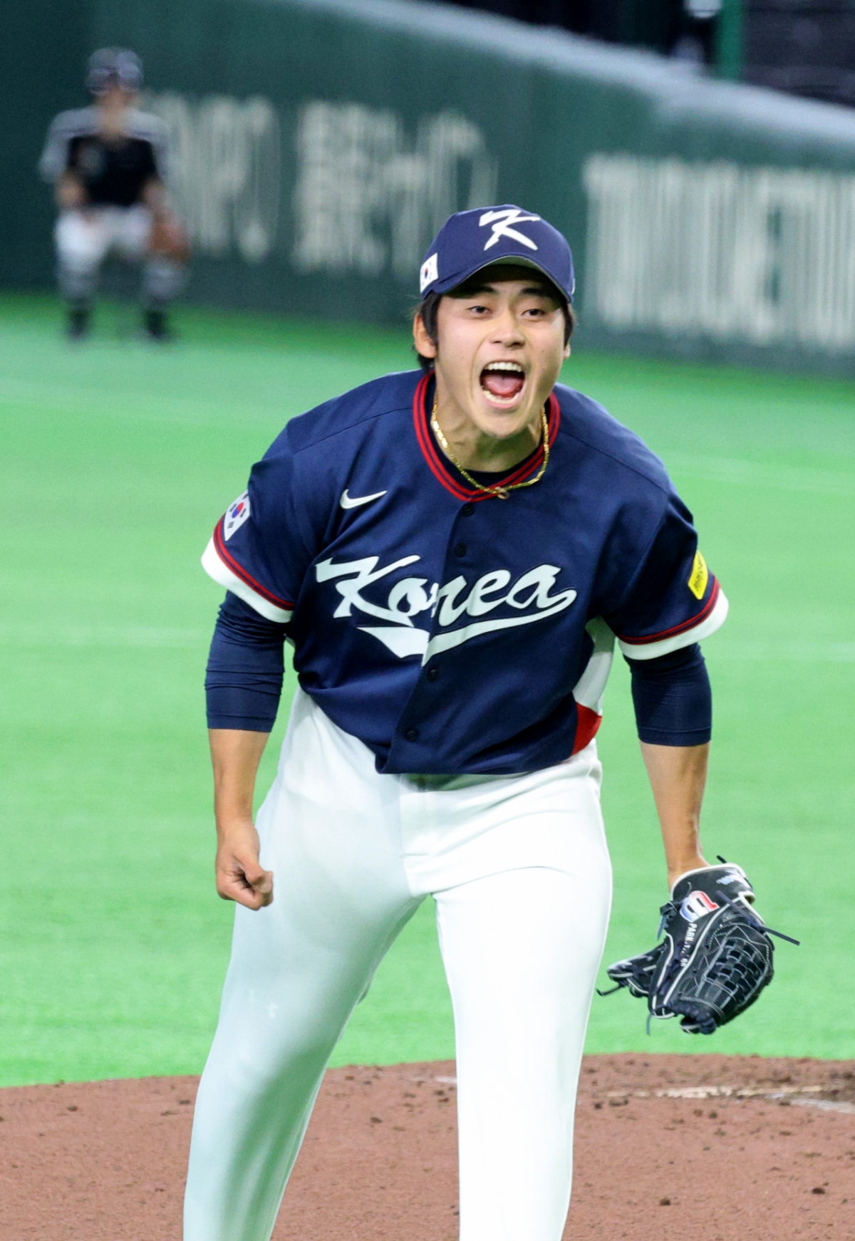 야구대표팀 박영현이 9일 도쿄돔에서 열린 2026 WBC 도쿄POOL 대한민국과 호주 경기에서 무실점 피칭을 펼치며 환호하고 있다.. 026.03.08.