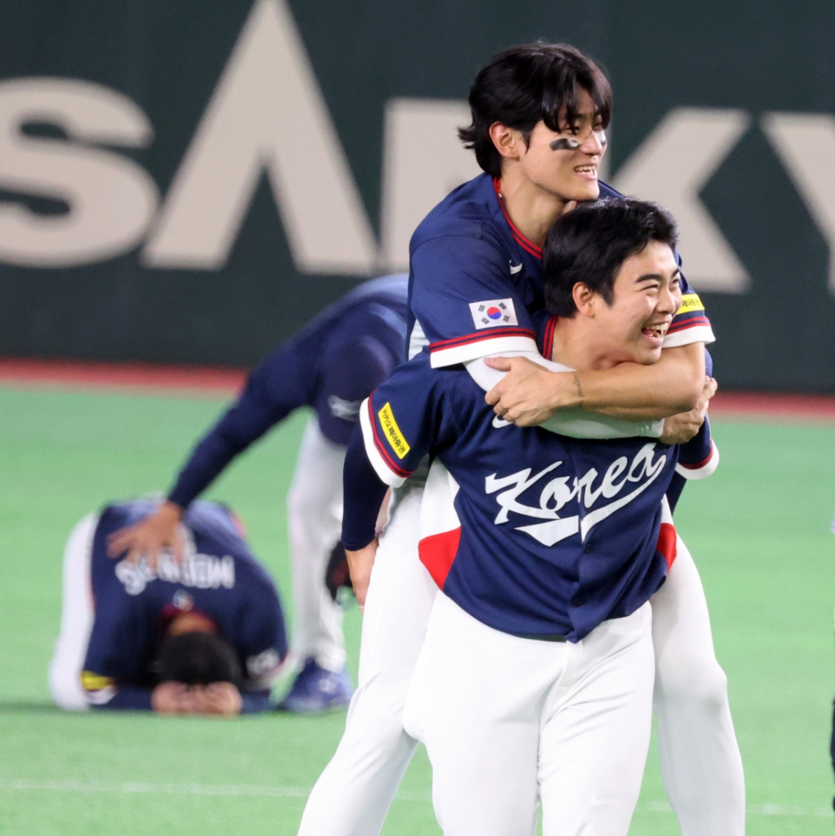 야구대표팀 문현빈이 9일 도쿄돔에서 열린 2026 WBC 도쿄POOL 대한민국과 호주 경기에서 승리했다. 대한민국은 7-2로 호주를 꺾고 마이애미행을 확정지었다. 문현빈은 승리 후 김도영을 업으며 자축했다.