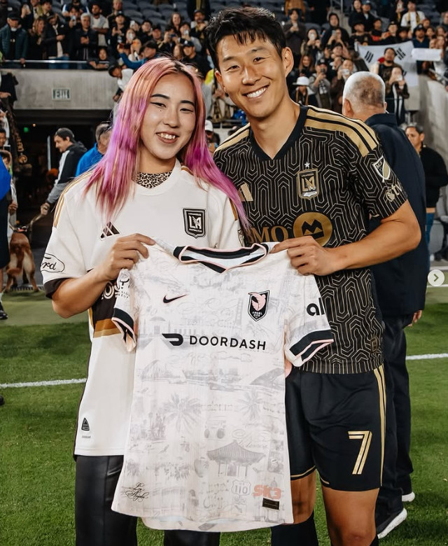 파격적인 스타일로 '축구계의 레이디 가가'라 불리는 일본 여자 축구 국가대표 엔도 준(25·엔젤 시티 FC)이 손흥민(34·LA FC)과 함께 찍은 사진을 공개했다.