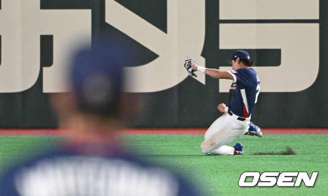 이제 9회말만 실점없이 막으면 됐다. 경기는 쉽게 가지 않았다. 조병현이 아웃 카운트 하나를 잡고 볼넷을 내주었다. 1사1루 다음타자는 릭슨 윙그로브, 배트가 힘차게 돌아갔다. 타구는 좌중간으로 빠르게 날아갔다. 이정후가 타구를 보고 주저없이 내달렸다. 공이 빠지면 1루 주자가 홈까지 들어올 수 있었다. 이정후가 몸을 날렸다. 공이 그의 글러브에 빨려들어갔다. 외야를 지배하던 박해민이 감탄하며 달려와 이정후를 일으켜 세웠다. 조병현이 마지막 타자를 내야 플라이로 처리헸다. 그 공은 공교롭게 이날의 히어로 문보경에게 날아갔다. 문보경은 경기를 끝내고 글러브를 높이 던지며 8강진출의 기쁨을 동료들과 나누었다./[email protected]