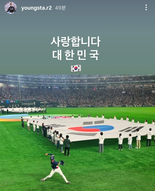 고영표는 9일 자신의 SNS에 "사랑합니다 대한민국"이라며, 2026 월드베이스볼클래식(WBC) 본선 2라운드(8강) 진출 소감을 전했다.