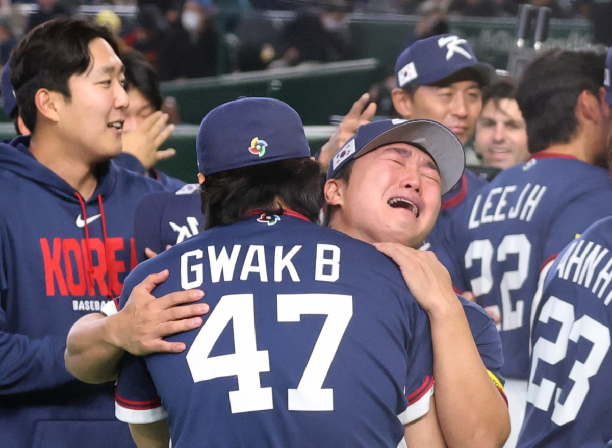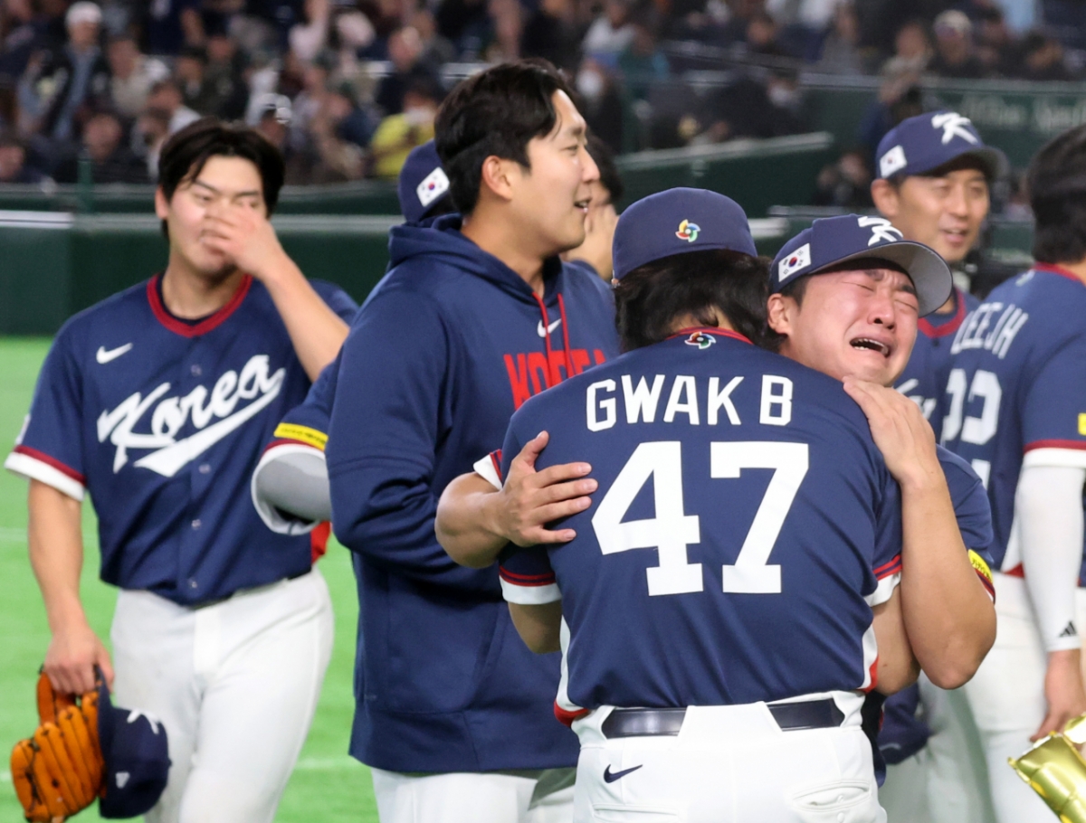 대한민국 야구대표팀이 9일 도쿄돔에서 열린 2026 WBC 도쿄POOL 대한민국과 호주 경기에서 7-2로 승리하며 마이애미행을 확정했다. 아슬아슬하게 5점차 2실점을 유지한 쫄깃한 승부였다. 고우석이 울음을 터트리자 곽빈이 안아주었고, 곽빈도 눈물샘이 터졌다.