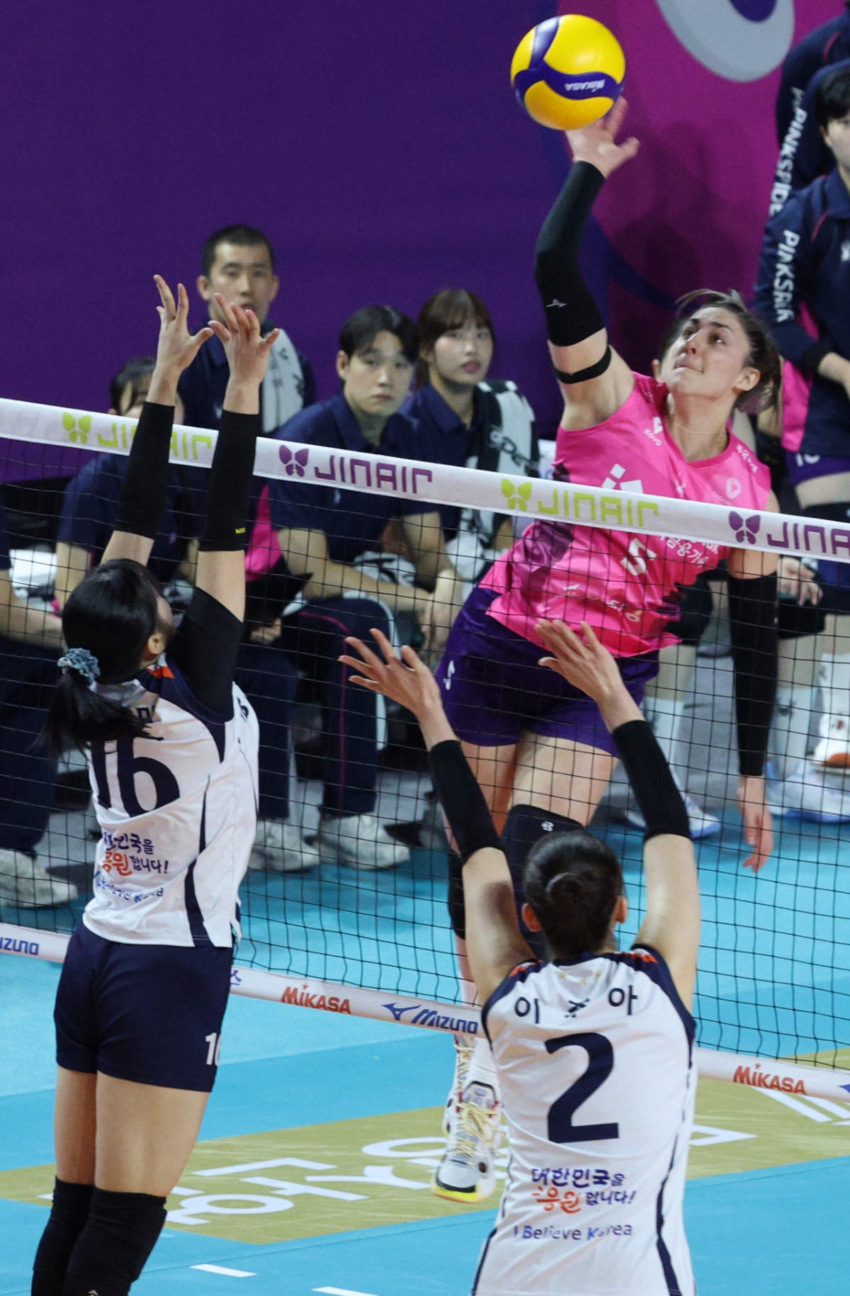 2025-2026 V리그 여자부 흥국생명 대 IBK기업은행 경기가 10일 인천 삼산월드체육관에서 열렸다. 흥국생명 레베카는 IBK기업은행 전수민, 이주아의 블로킹 위로 강스파이크를 날렸다. 이 경기는 인천 삼산월드체육관에서 진행됐다. 2025-2026V리그 여자부 흥국생명 대 IBK기업은행 경기가 10일 인천 삼산월드체육관에서 열렸다. 흥국생명 레베카가 IBK기업은행 전수민, 이주아의 블로킹 위로 강스파이크를 날리고 있다. 독자들의 PICK! "한국 맞아?"...남편 전처들과 한집살이 "너무 친해" 이혼 포기 "목사 남편, 동서와 외도...조카가 혼외자" 친자 확인까지 은행 취업 실패→유튜버로 대박...'77억 전셋집' 공개 "돈 안 줘서, 복수한다 생각"...정선희, 故안재환 실종 신고 안 한 이유