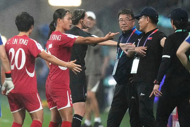 중국 '시나스포츠' 등 복수 매체의 10일(한국시간) 보도에 따르면 지난 9일 호주 시드니 웨스턴 시드니 스타디움에서 열린 2026 아시아축구연맹(AFC) 여자 아시안컵 조별리그 B조 3차전 중국과 북한의 경기 중 북한 선수들이 판정에 불만을 품고 집단으로 경기를 중단시키는 이례적인 사태가 발생했다.