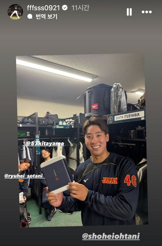 라쿠텐 골든이글스 투수 후지히라 쇼마는 인스타그램 스토리에 ‘b’ 로고와 함께 ‘오타니 쇼헤이’라는 문구가 적힌 상자를 공개하며 “감사합니다”라는 메시지를 남겼다.